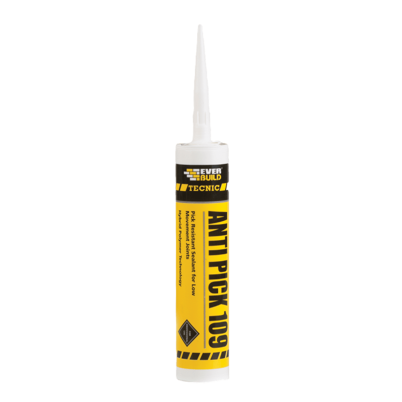 nEverbuild Tecnic Anti Pick 109 is a high modulus, one part, chemically curing solvent free sealant combining the best qualities of silicone and polyurethane technologies. It is specifically designed for providing a finger pick resistant seal accommodating small movement.nnRecommended for secure environments i.e. prisons, hospitals, municipal and public areas where the sealant is hard to reach or the person is under supervision. Perimeter sealing of doors, windows and sanitary ware, joints in heavy cladding.n